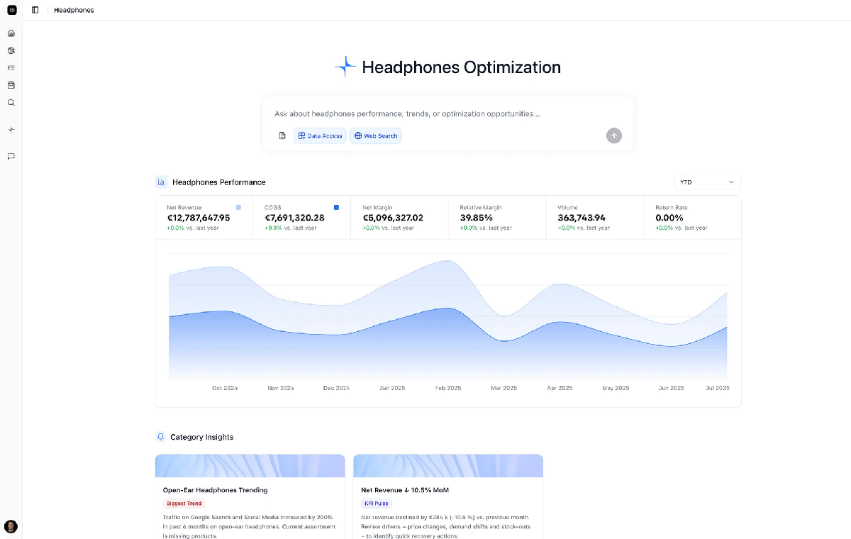 Zenline AI empowers European retailers with AI agents for modern assortment optimization. In a market shaped by global platforms and increasing margin pressure, Zenline helps build profitable, shopper-centric assortments. Its AI software combines margin data with market trends to deliver automated, product-level recommendations, from pricing, product launches and assortment consolidation to the ongoing optimization of existing items. By analyzing internal margin and competitor data alongside social trends, Zenline identifies assortment gaps and suggests concrete pricing actions. The result: intelligent, competitive assortments aligned with what shoppers truly want.