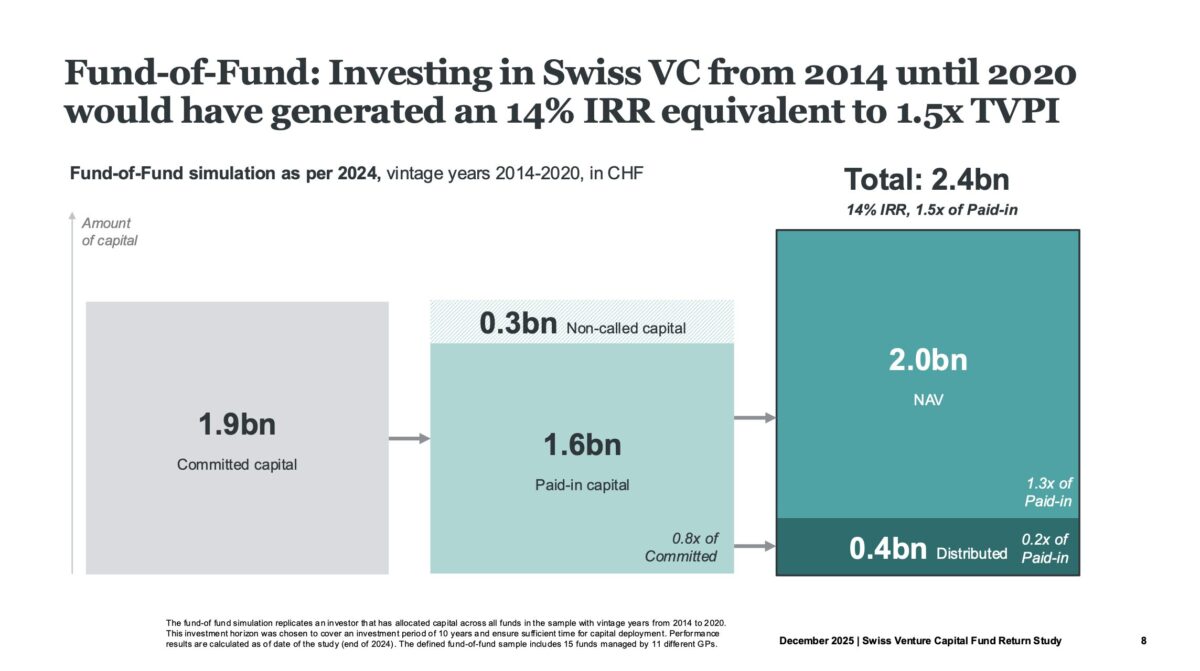 | Fund-of-Fund | Investing in Swiss VC from 2014 -2020 until end of 2024 would have generated an IRR of 14% |